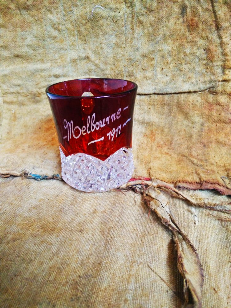 Sold – Old Lucite, Plastic and silver, Italian Brooch. 1950s era. A translucent red bow brooch created from lucite plastic and silver on the back. . . (Passed the ice cube test for silver)Gold sticker on the back reads…Made in Italy by “Manoa 2”