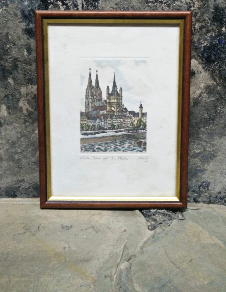 Ultramarine blues, grey. Signed ‘Jacques Monet” on the front.